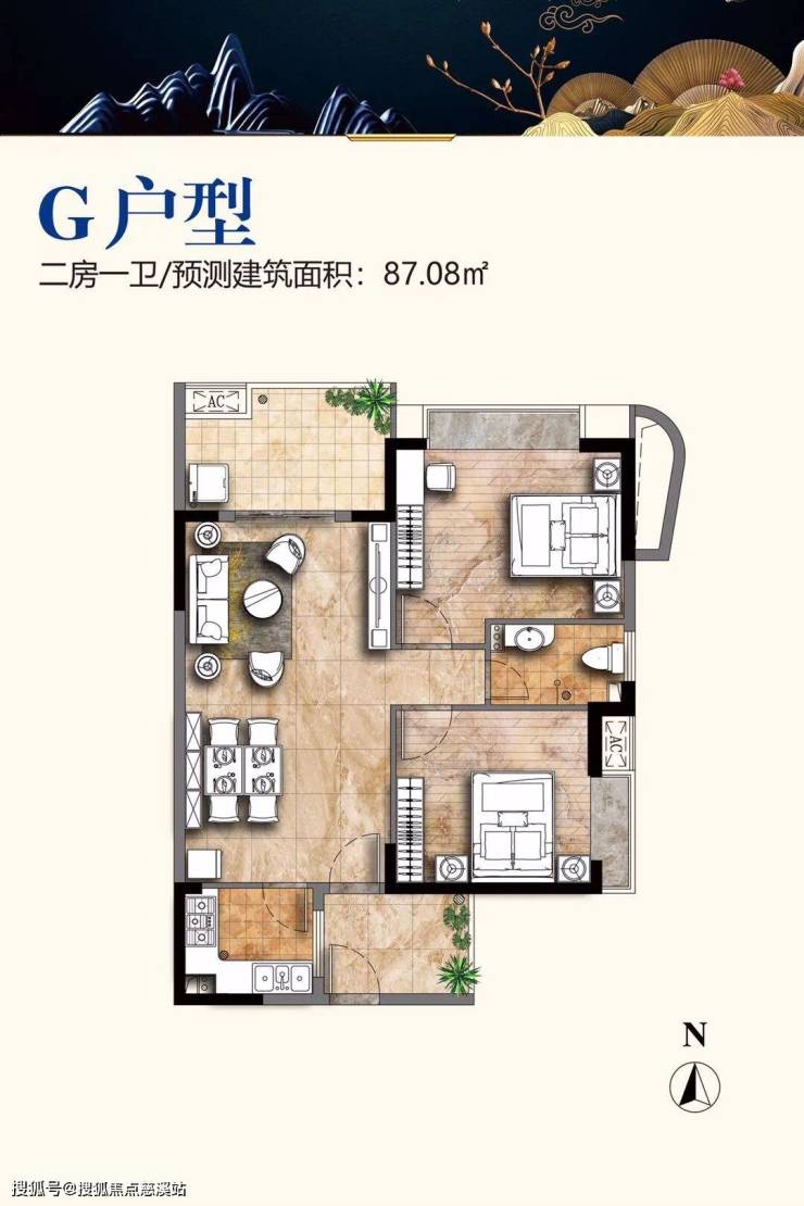 87平小三房户型