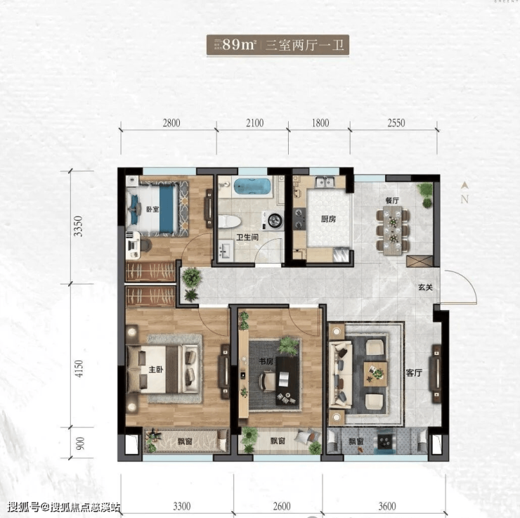 三口之家 建筑面积约 89㎡ 理想户型