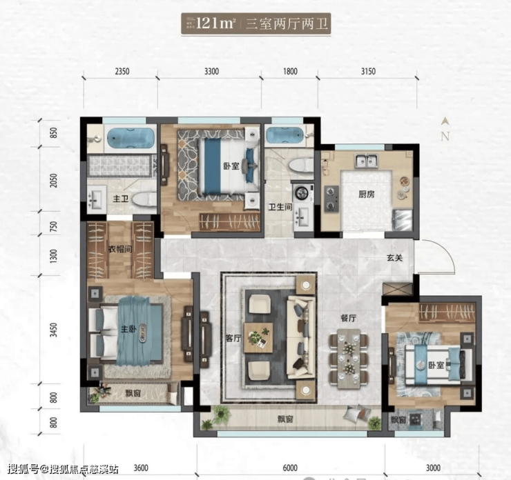 三面飘窗赠送,自在空间享有。