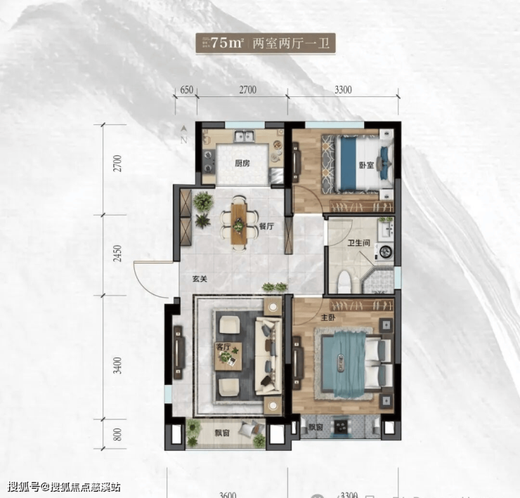 刚需首选 建筑面积约 75㎡ 明星户型