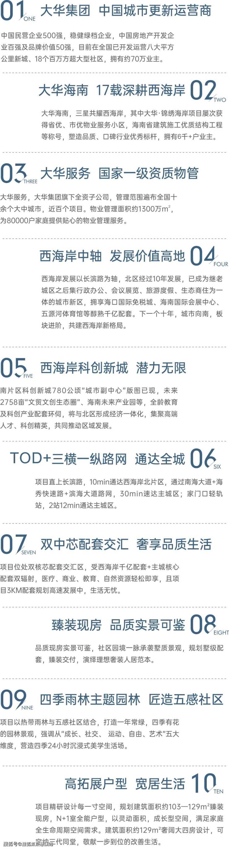 大华·锦绣四季,于西海岸中轴发展热土之上,规划16栋高层及12栋叠墅,匠筑建筑面积约103—129㎡臻装现房,以品质人居范本,兑现城市菁英生活向往。