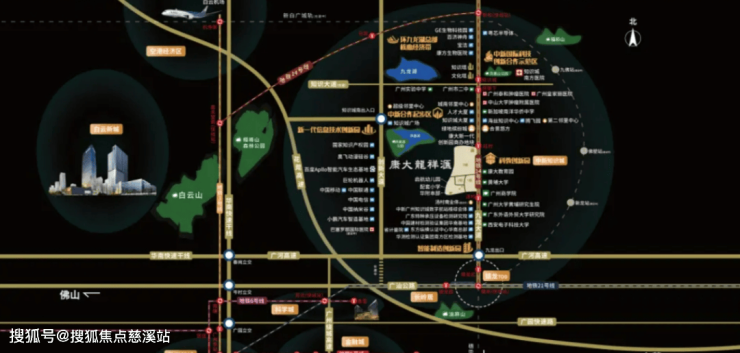 同时,项目位于中新知识城南起步区门户,紧邻广河高速九龙出口,经广河高速接驳华南快线干线,高速30分钟直达珠江新城,9分钟直达白云机场,45分钟到达湾区各大城市。