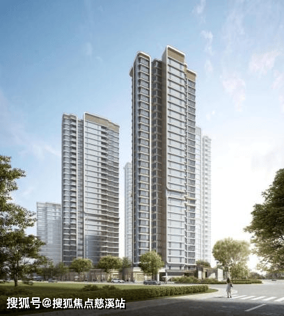 外立面采用香槟金弧形转角线条勾勒,搭配大面光感落地玻璃窗,外观简约大气,极具都市感。