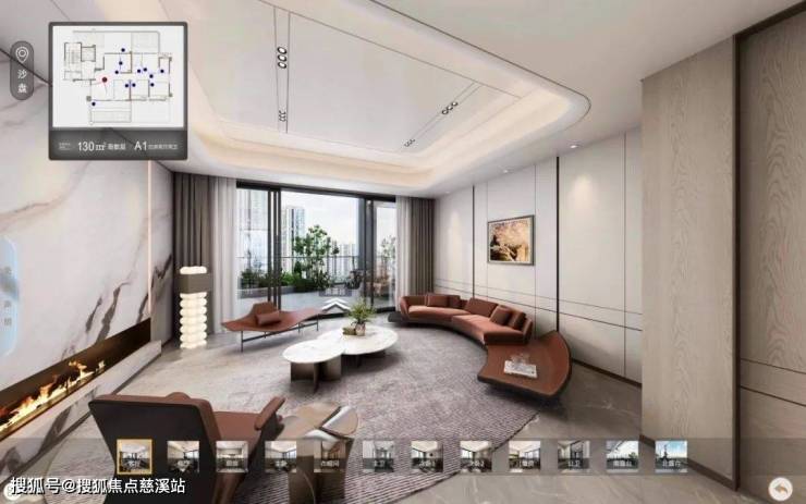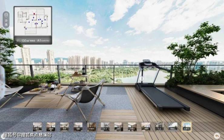 传统阳台和露台是横向的,【三木乐府】的空中花园既有近22m的南向巨幅花园,也有近8.4m进深的空中茶室,纵深融入户型内部。