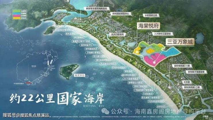 三亚海棠湾被定位为“国家海岸”,作为世界级的旅游度假区和度假天堂,承载国家热带滨海旅游品牌形象。规划"一点·一带·三区",约22公里黄金海岸线坐拥千亿级的娱乐、休闲、康养、购物、教育等资源配套。