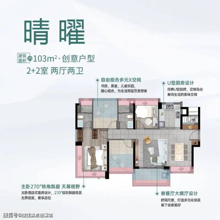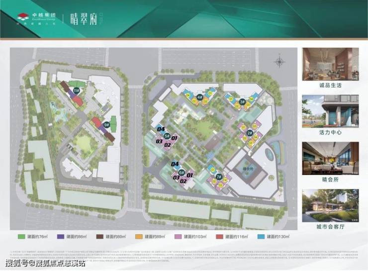 户型:建面约76-130 ㎡三至四房宽景臻品