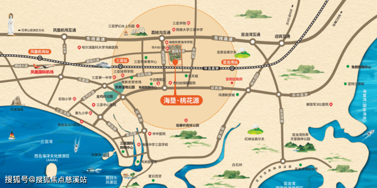 🚖【交通配套】落笔洞路、鹿城大道两大城市主干道交汇处,距环岛高速荔枝沟互通仅约800米,三亚动车站约7公里,三亚凤凰机场约17公里。立体交通路网,畅通全城乃至全球。