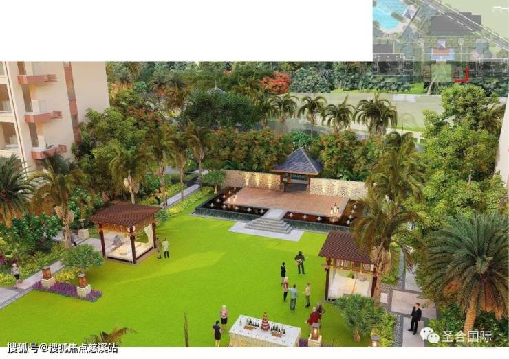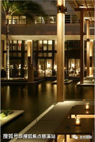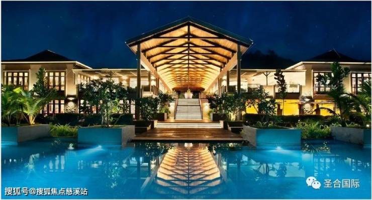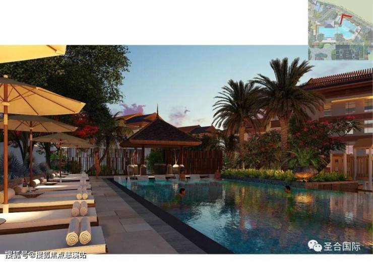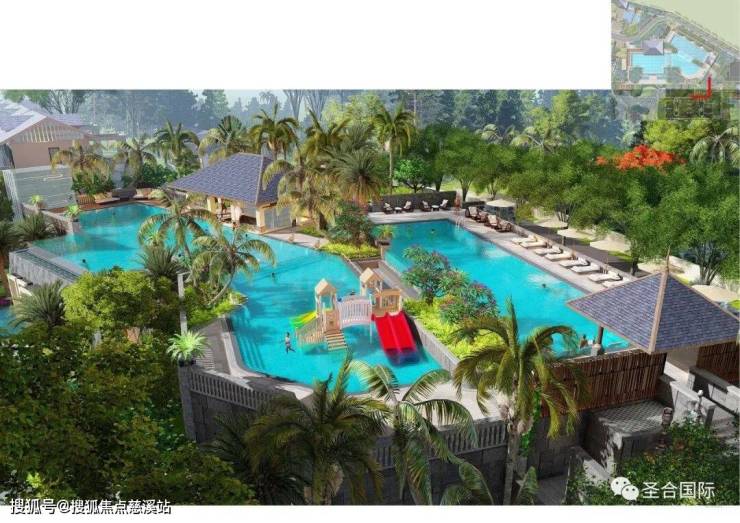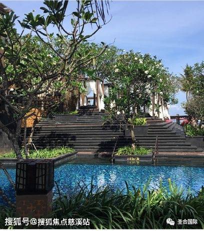 水面结合椰林尽显度假氛围,葱郁的热带植物渲染东南亚风情。