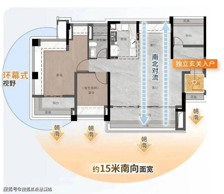 其二,更短进深,且全户型无遮挡,通风、视野效果拉满!