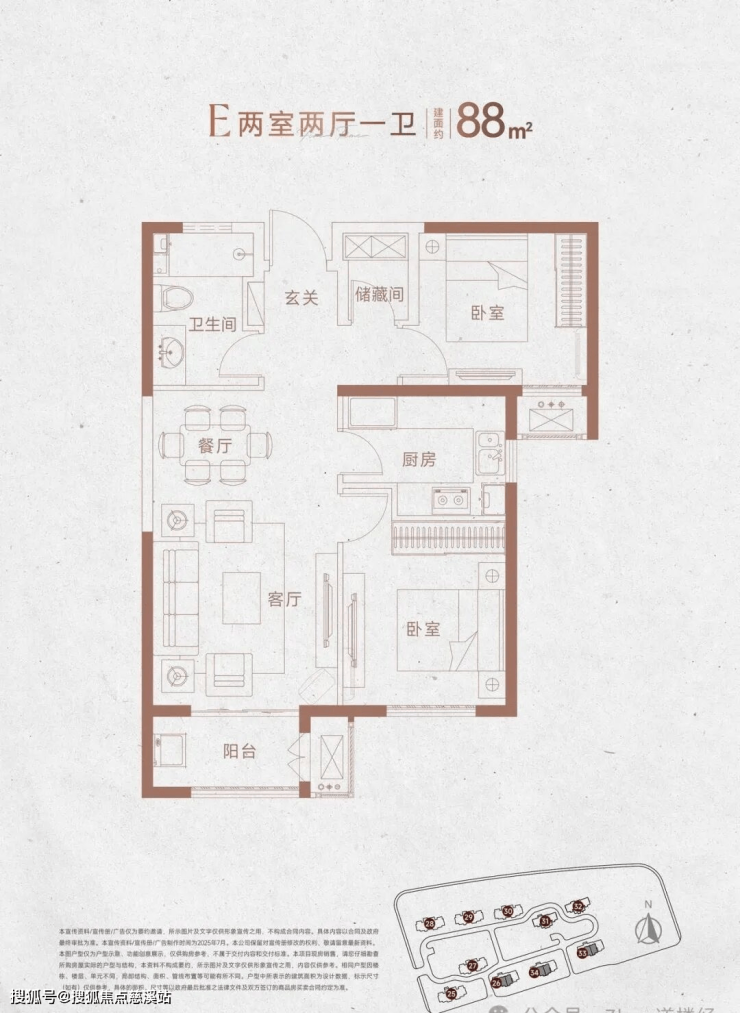 户型优点:全明、空间可调整(卫生间可改干湿分离、主卧室门可改方向后客厅公用、储藏间可改次卧空间)、独立玄关出入增加仪式感