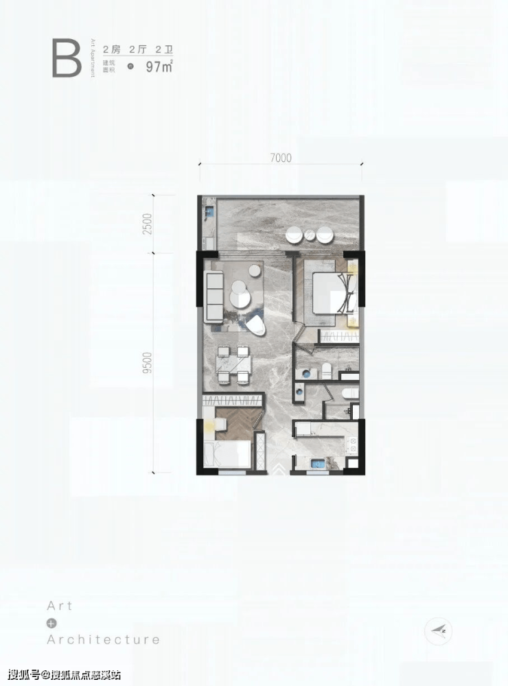 B户型/2房/2厅/2卫/97㎡