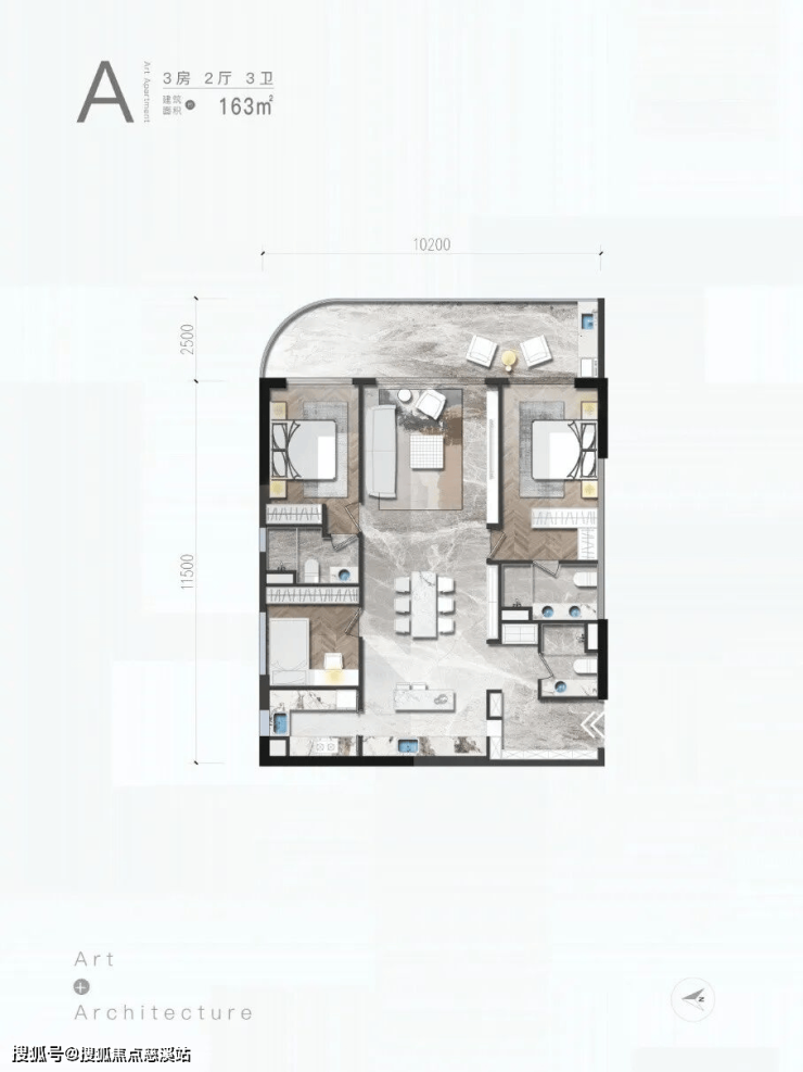 A户型/3房/2厅/3卫/163㎡