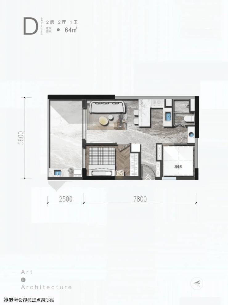 D户型/2房/2厅/1卫/64㎡