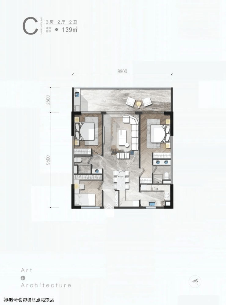 C户型/3房/2厅/2卫/139㎡