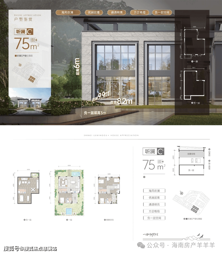 一期首推的是75㎡的牧云叠拼系列、75-150㎡的观海双拼系列、100㎡的拾光双拼系列,85㎡的望峯联排系列和75㎡的听澜合院系列,每户都享有极佳的景观面和超大的拓展空间,整体性价比很高。总价百万起,轻松入手海南自贸港的绝版山海资产。