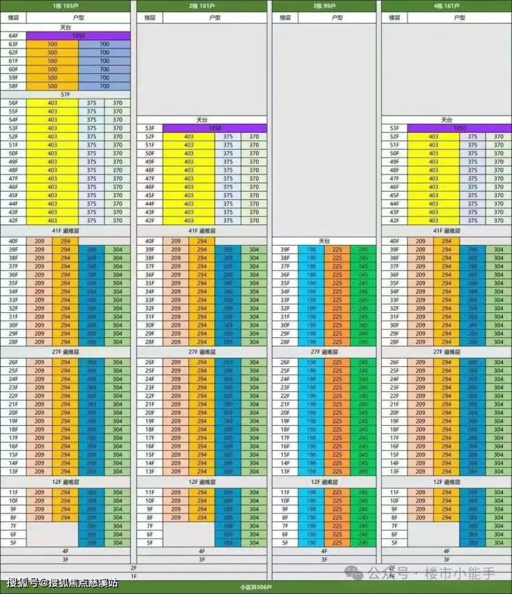 ⑤209、294平各62套,269、304平各66套,370、375、403平各26套,500、700平各6套,1050平2套。