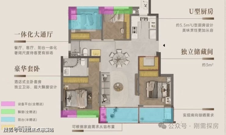 从户型数据来看,公摊16%,赠送14平,得房率97%。
