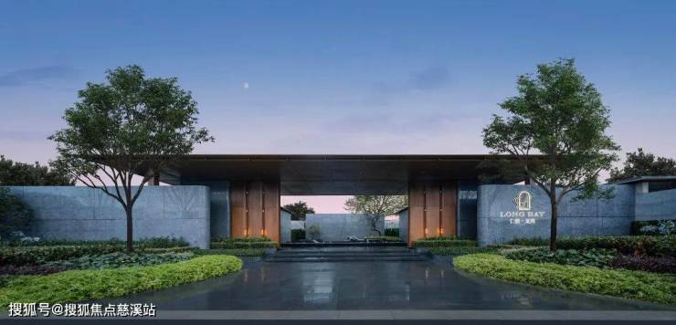 仁恒龙湾高约5米、总长25米的的归家大门,以谦和姿态诠释了家的温馨与归属感。大门选用源自法国深层的碳化暖木墙体,这一独特材质不仅确保了防腐防虫的实用性,更以木材温暖的色泽,为每一次归家之旅披上了一层柔和而温馨的光辉。