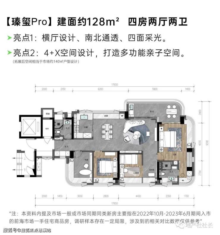 瑧玺pro:128㎡4房,在尺度、功能及空间结构上实现较好平衡