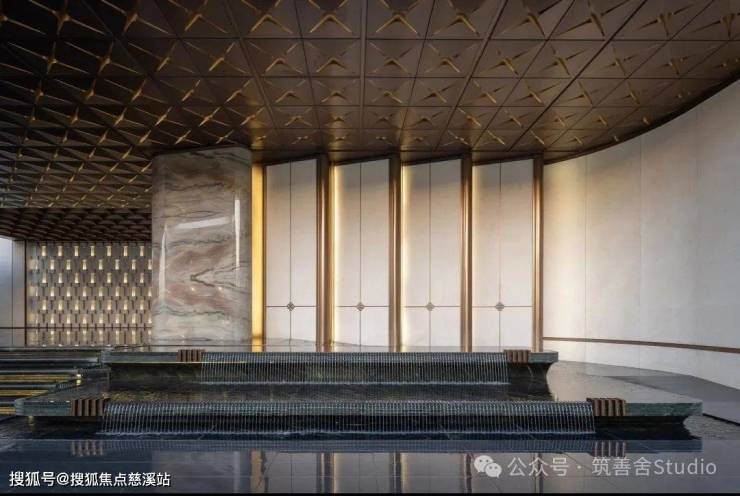 社区主入口气派非凡,51米的宏伟界面宽敞开阔,6米挑高空间彰显非凡尺度,营造出一份尊贵的归家仪式感。精选米黄色贝金石材与古铜金属交相辉映,每一细节都经过精心雕琢,每一道工序都蕴含匠心独运。弧形紫气东来奢石,以深邃紫色为基调,纹理流畅如河流山川,呈现出东方美学的磅礴与精致。其造型打破传统大理石的限制,形成流畅的弧面,成为归家路线上引人注目的视觉焦点。