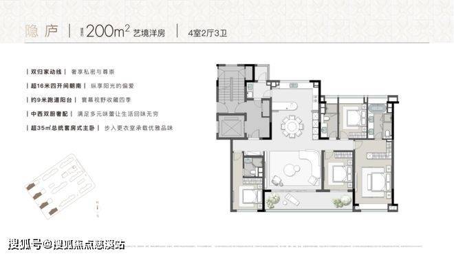洋房户型200㎡起步,超16米四开间朝南+约9米跑道阳台+超35㎡总统套房式主卧,这尺度感非高层可比。