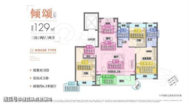 文璟和颂目前主力在卖的是8、9号楼,直面机场河,位置很好。面积129㎡起步,1:1的梯户比,全屋5大飘窗,特别是约6.3米的大横厅尺度,放在全城来看,都够突出。