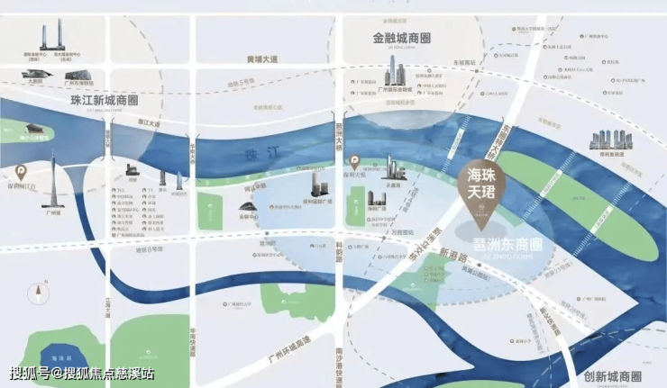 海珠琶洲位于“一江两岸”黄金水岸精华段,既承接广州城市现代的中轴线,又作为广州科技创新轴的国家战略主阵地,与珠江新城CBD、金融城CBD构成广州发展黄金三角,接棒规划发展广州核心的第二CBD发展板块。
