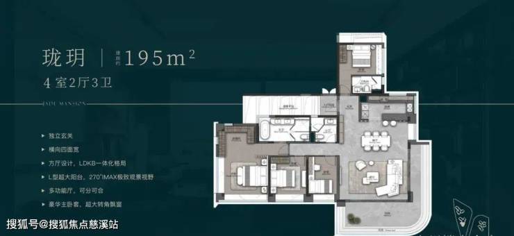 195㎡珑玥:22㎡景观客厅+23㎡餐厨空间,奢阔尺度匹配高端圈层。