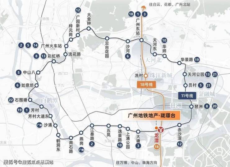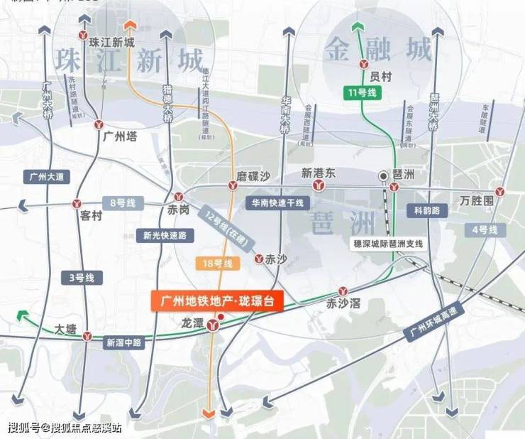 珑璟台占据琶洲南TOD核心区位,与地铁18号线龙潭站无缝接驳,一站直达琶洲西区,两站至珠江新城,三站至金融城。未来11号线(在建)通车后,将形成“双地铁+环线”立体交通网,快速串联荔湾、天河等核心区。