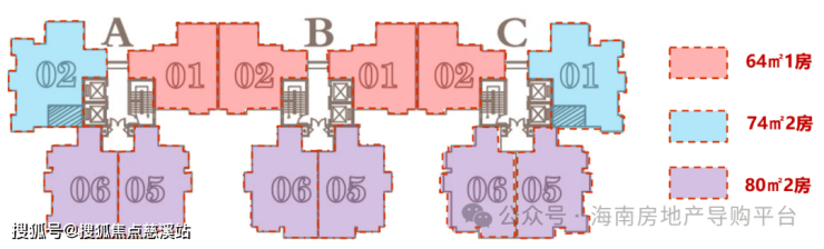 产品面积:64-80㎡ 一房到两房