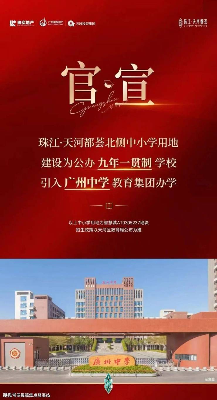 官宣:珠江·天河都荟北侧教育用地建设为公办九年一贯制学校,引入广州中学教育集团办学!