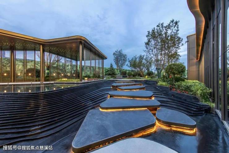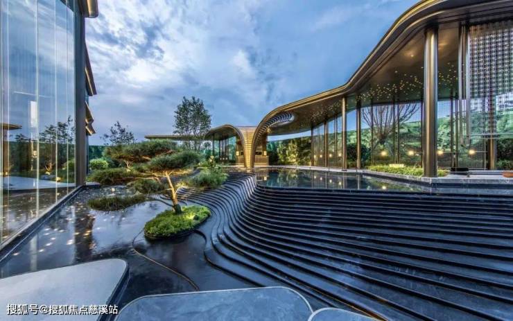 层层退台水景:以山间梯田为灵感,水流顺阶而下,草木点缀其间,营造“层层水落白苹洲”的东方意境,成为业主驻足听泉的生活聚场;