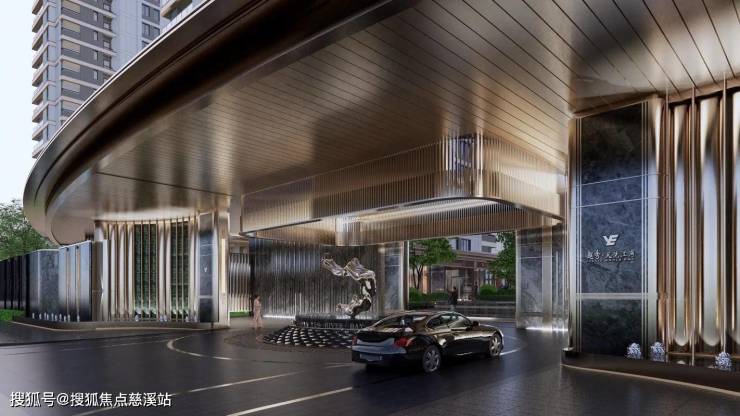 双大门礼序:南大门约58米会所门庭,东大门升级为约70米恢弘门仪,采用意大利灰石材、大花绿奢石与香槟金穹顶,搭配龙鳞纹环岛水景,营造顶级豪宅归家仪式感3。