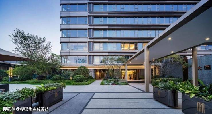 中宁府的建筑立面,采用大面积的定制玻璃+金属铝板,并结合转角、切割、圆弧等复杂工艺。立面的圆弧设计消减了建筑的力量感,令建筑的视觉与周围的景观更为和谐共生,也是项目贯穿始终的重要视觉元素。