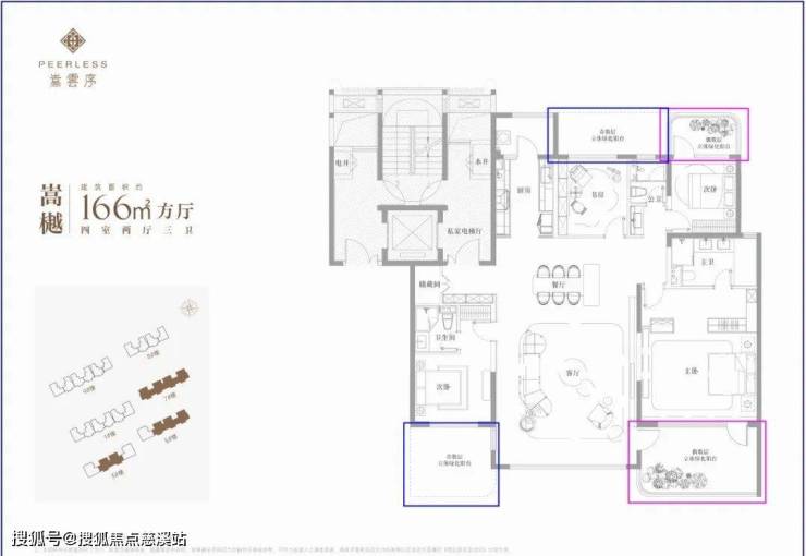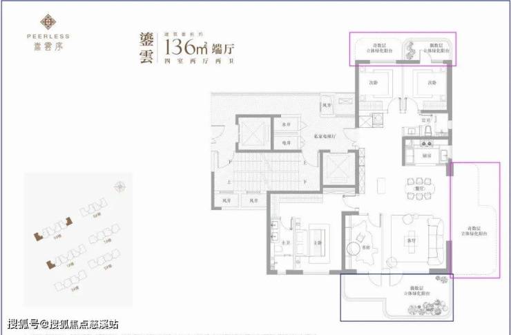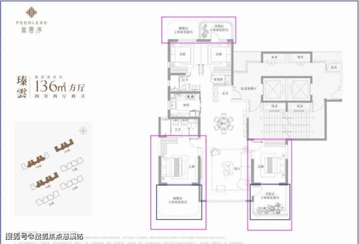 高层产品只有2个户型,分奇数层、偶数层,全部都是136平的四居室;
