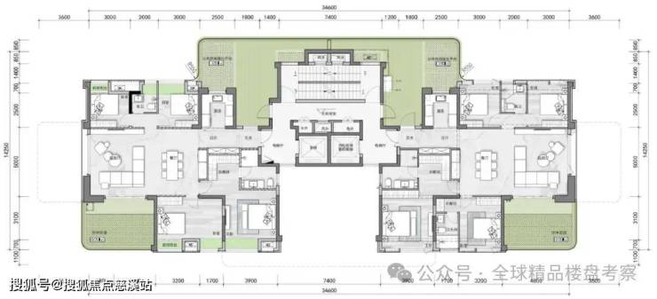 规划12栋高层住宅,呈周边式布局,留出中央核心景观区域,景观资源得到充分利用,也保证了东西两侧观湖观景的视线合理性。