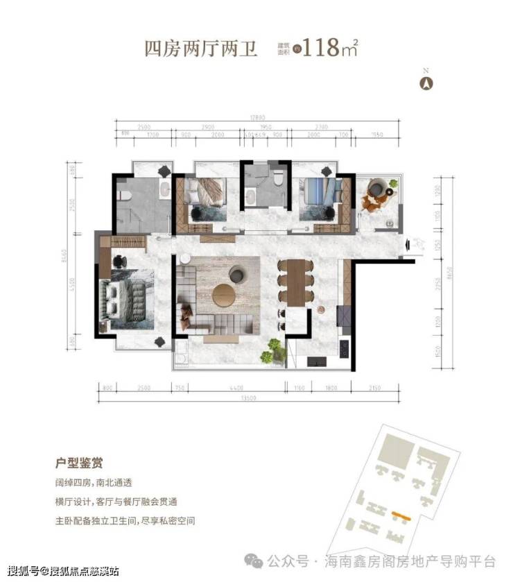 四房两厅两卫 建面约118.8㎡