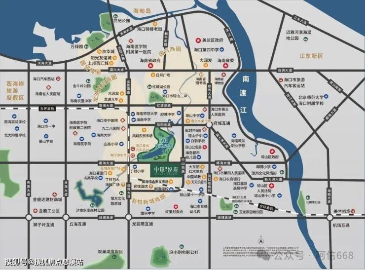 中璟悦府位于海口琼山区椰海大道,斜对面凤翔湿地公园。这个位置生活配套成熟,交通便利。南边是农贸市场和椰海学校,对面有旺佳旺超市,东边不远就是海口第四人民医院,西边可以到吾悦广场和高铁东站。
