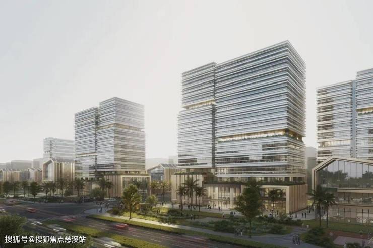 海控·江东广场以气候适应性设计为核心,通过建筑形态与自然环境的深度交互实现节能目标。项目采用Low-E中空钢化夹胶玻璃与断桥铝合金窗框,结合中置遮阳百叶,显著降低太阳辐射和热量;中央景观公园串联21栋办公楼,建筑立面灵感源自琼州海峡的波浪与海南传统村落,横向波纹幕墙与坡屋顶聚落不仅赋予视觉美感,更通过被动式节能设计减少能源依赖。