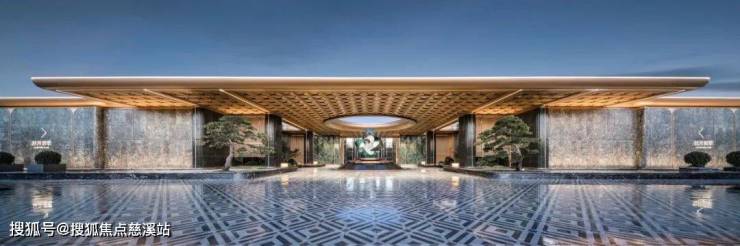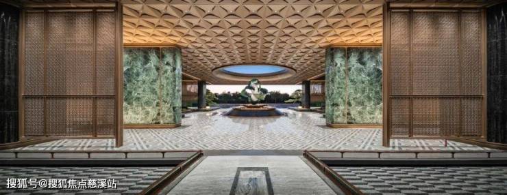 作为归家的礼仪门面,翡月之门凝萃着绿城对时代美学的极致思考, 66米奢石落客区、奢华酒店式归家大堂、约1600㎡架空泛会所、立体式花园建筑、顶跃高厅、奢适空间;酒店式礼序入口,松礼迎客,中心处的水景叠级呈现,结合雕塑营造入口仪式感及尊贵的归家体验。对于材质的选择与组合、形体比例的推敲、拼接面的分缝与拼合等工作的精细考量,提取时代的花纹,巧妙设计在空间里,让空间不经意地流露历史的品质。