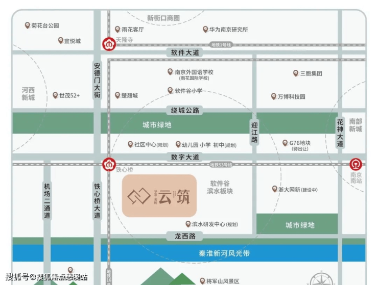 项目地址:位于软件谷,北邻数字大道,南邻秦淮新河,东临迎江路,西临凤翔翠园。
