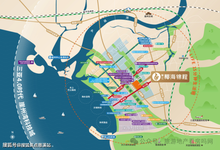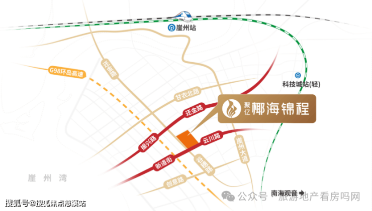 聚亿·椰海锦程落址三亚崖州湾科技城重点板块——南繁科技城醇熟地脉,距G98环岛高速崖州互通约2.5km,距崖州高铁站约3km,周边多条公交路网(1- 4路、6路、58路)均可抵达崖州火车站。