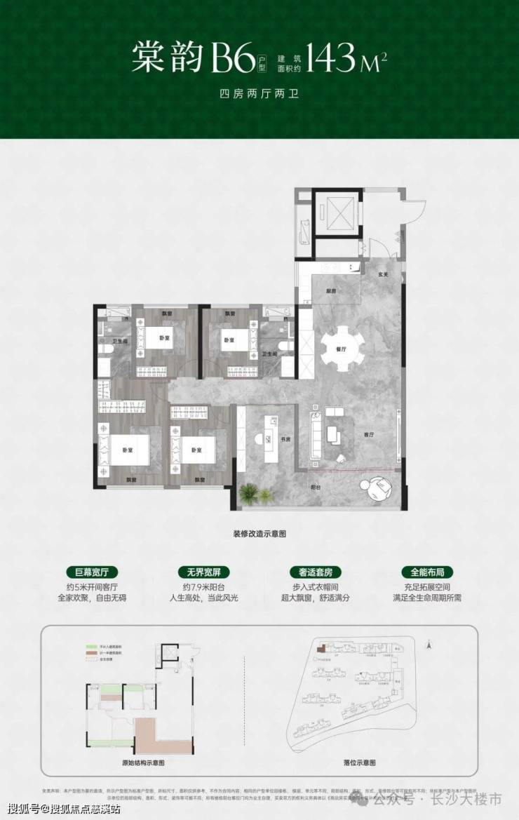 方圆900米范围内,坐拥韶山路、芙蓉路双干道,更拥揽地铁1号线、3号线、4号线、7号线(在建,预计2027年建成通车),傲立地铁4/7号线砂子塘上盖,通行全城无碍,纵观长沙,止此悦棠府。