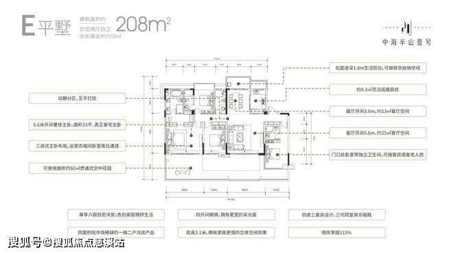 户型②:建面约208㎡ 4房2厅4卫