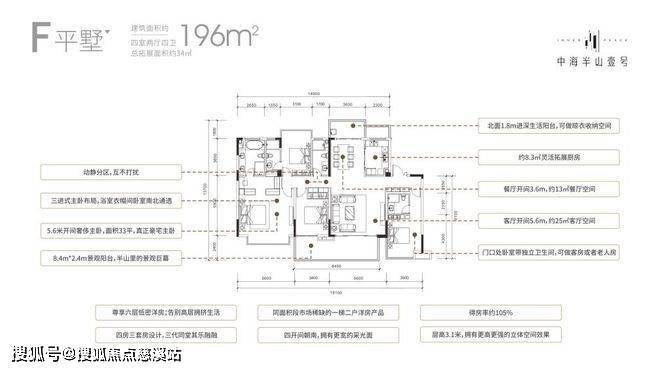 户型①:建面约196㎡ 4房2厅4卫