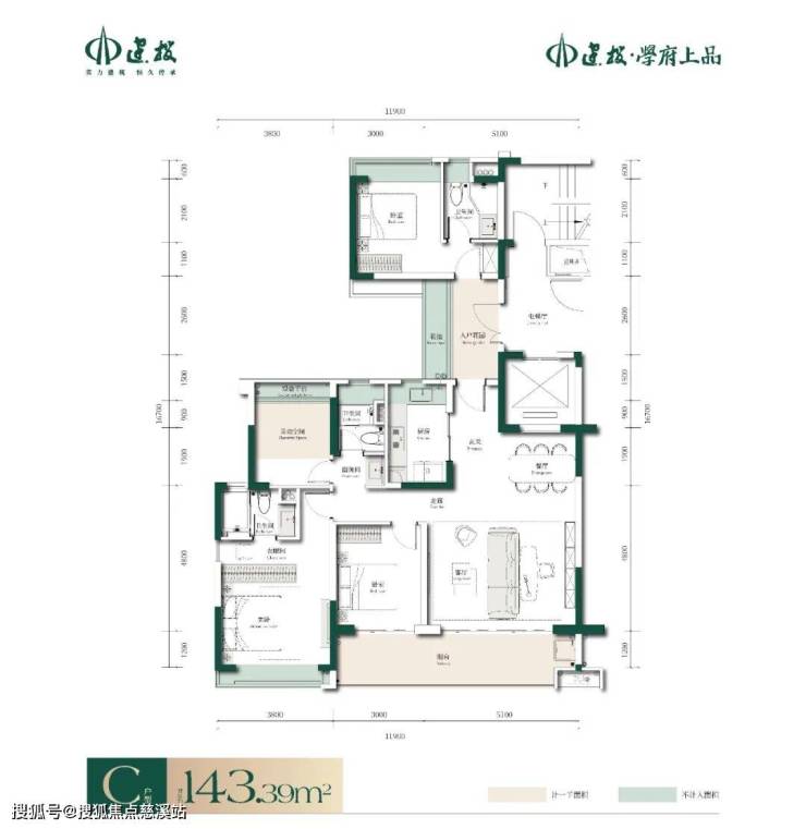 建面143.39㎡户型:
