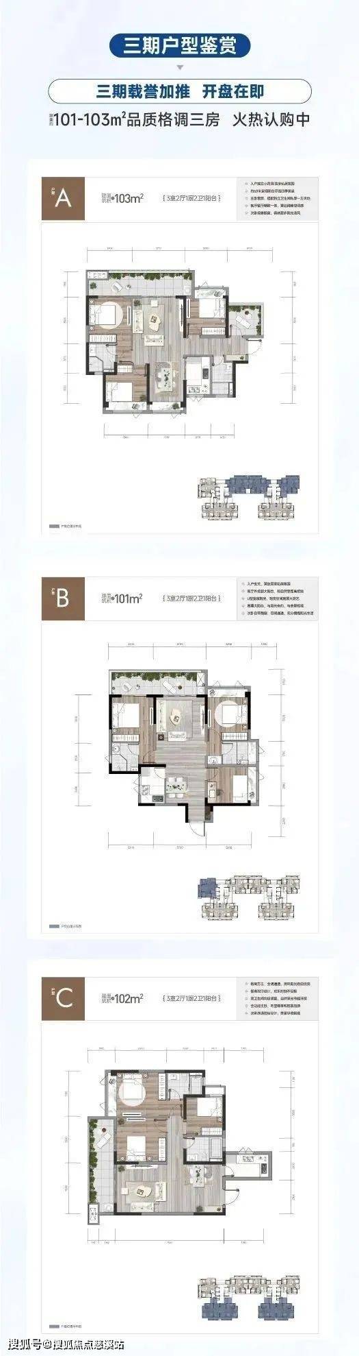 12#13#(180套)101㎡三房两厅两卫、103㎡三房两厅两卫,82万元/套起均价:8000元/㎡(精装)