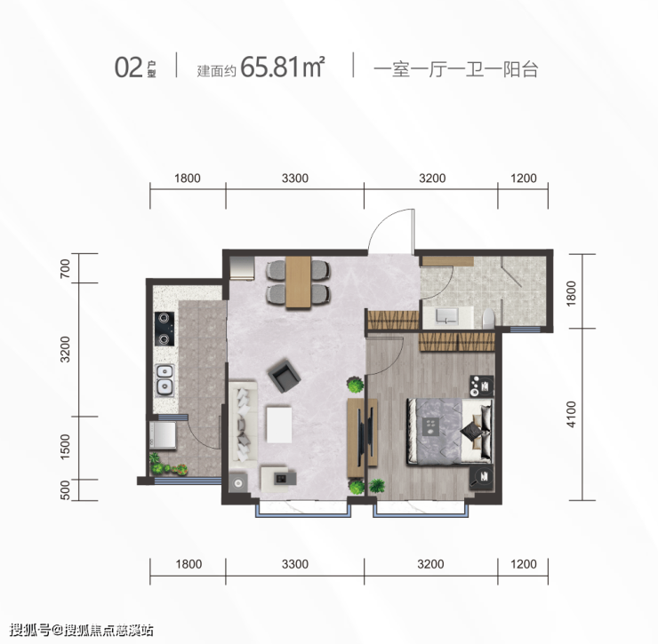 一室一厅一卫一阳台03户型丨建筑面积约100.51、100.73㎡