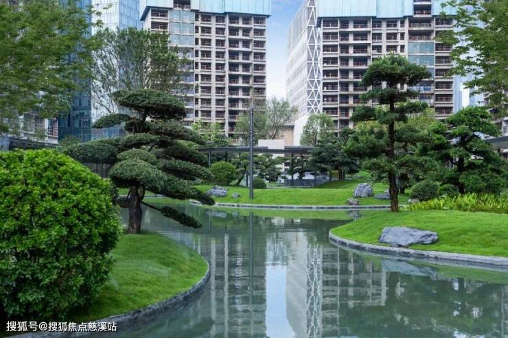 漫步园中,黑山石、冬青、罗汉松等多种名贵植物相映成趣,带来城市内的悠闲静谧感。