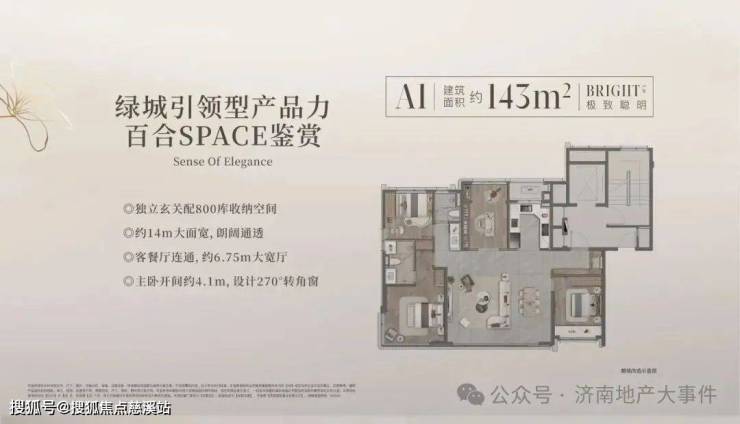 位置优越CBD核心区,品牌是绿城物业。2025绿城瑞马CBD巅峰之作,“润、贵、雅、香”四大豪宅基因,百合花开泉城。这应该就是项目名字的由来吧——绿城瑞马润百合。